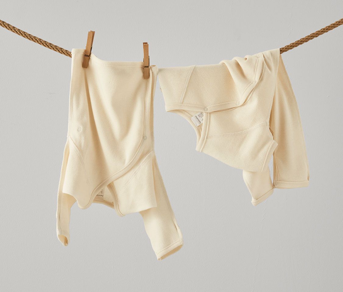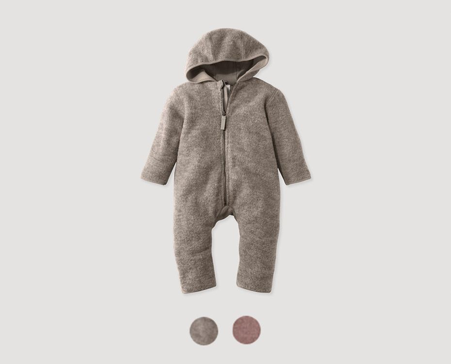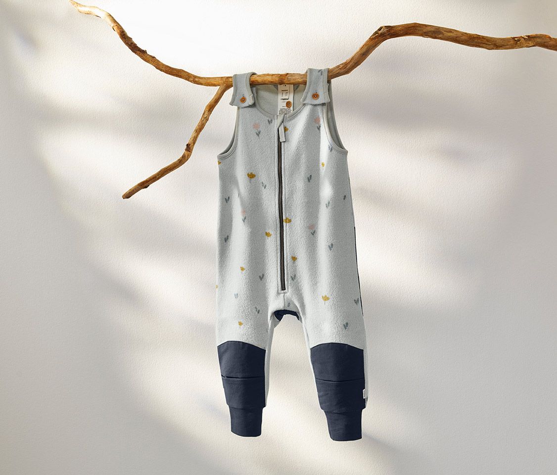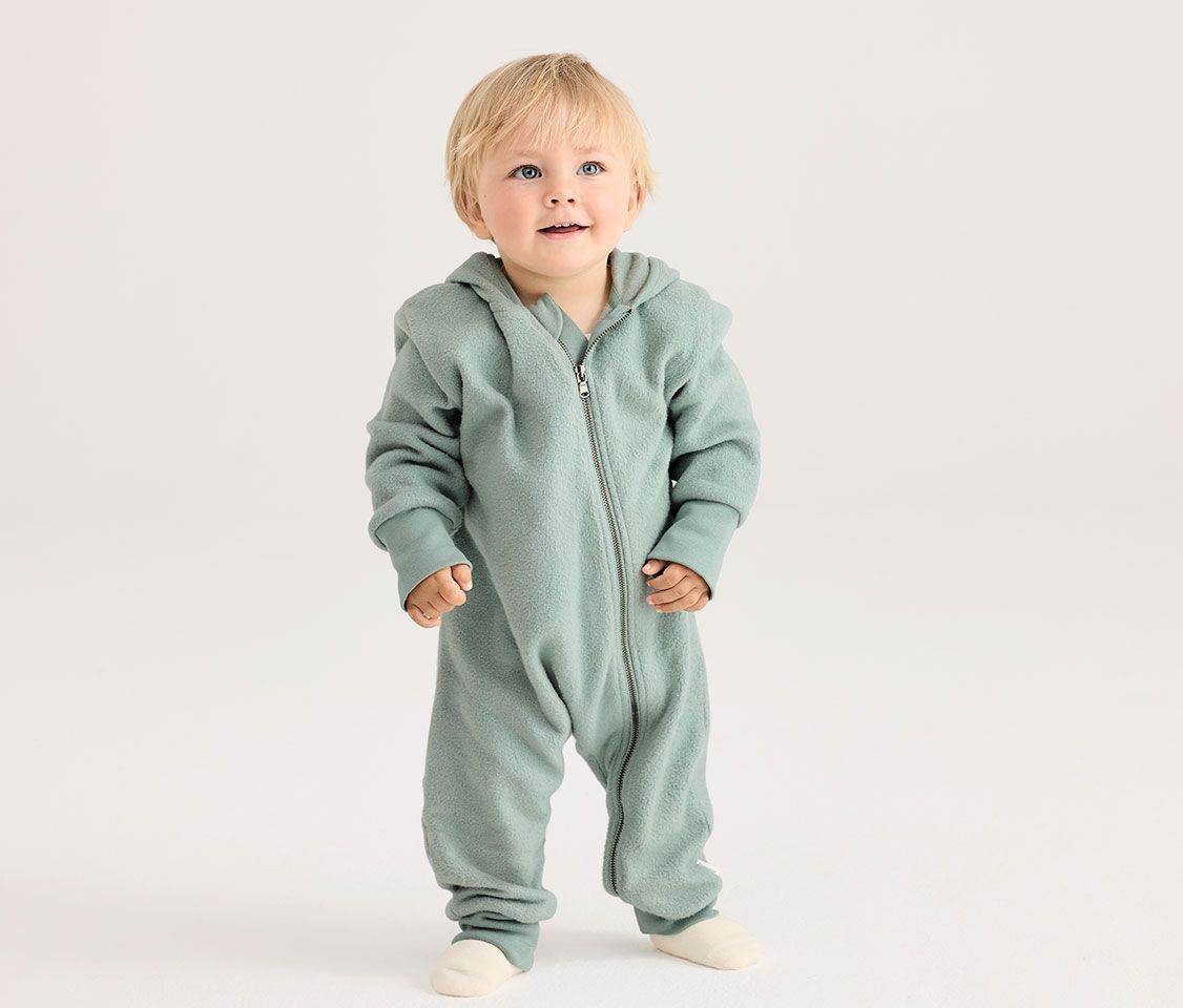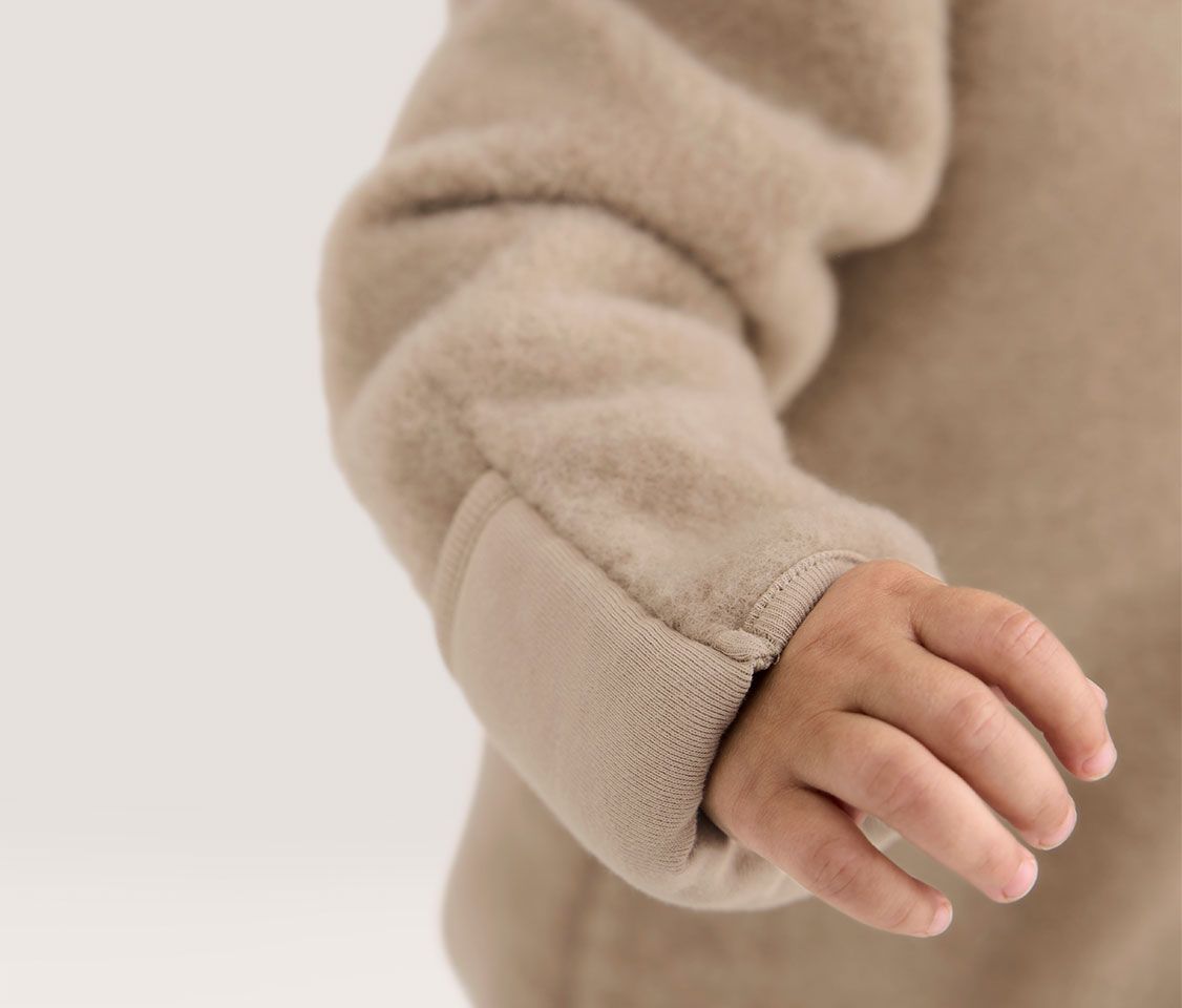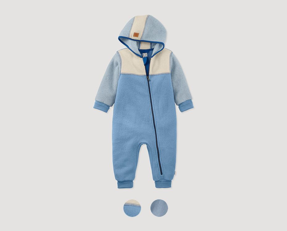 Highly recommended by parents and kids: our organic overalls. Breathable and warm, made from organic cotton and organic merino wool. Completely free of microplastics. Now with patches made from natural softshell for even greater durability. Fairly produced without harmful chemicals.