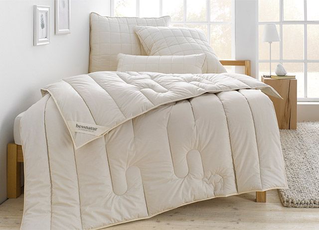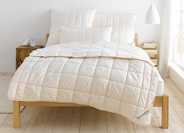 Blankets filled with fine animal hair generally do not need to be washed as they have high self-cleaning properties. It is perfectly sufficient to air new wool or camel hair comforters properly. Even outside in damp air, as the fibers will then straighten out again after drying and regain their natural bulkiness. Cotton blankets are washable, but should not be spun or shaken out vigorously. Ideally, you should spread the blanket out on a clothes horse to dry. It will thank you for it.