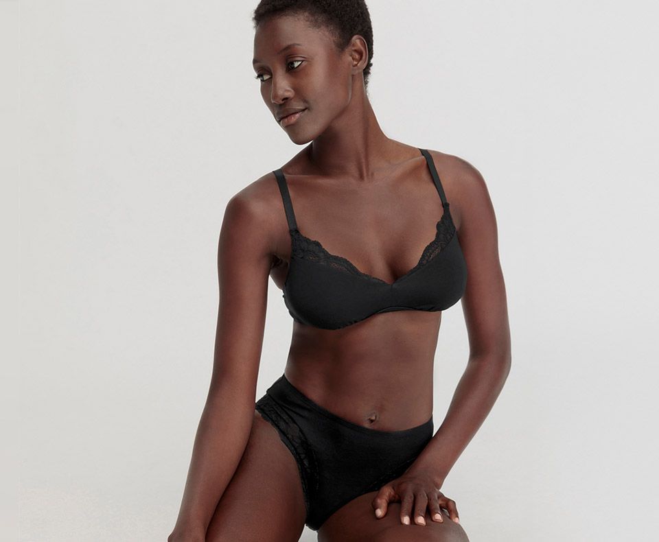 Sustainable underwear made from organic cotton with sensual lace. Skin-friendly and supple for life's special moments.